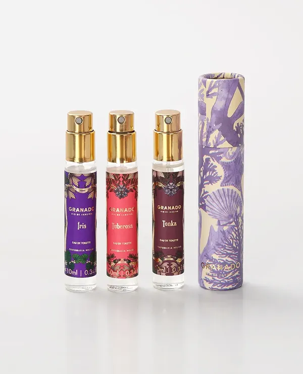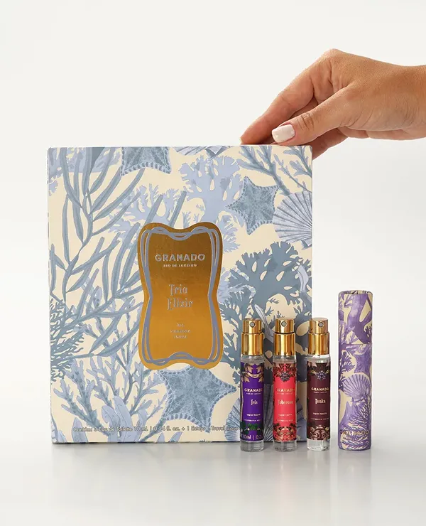 O kit Coleção Perfumes Elixir traz as fragrâncias Tonka, Íris e Tuberosa em tamanho exclusivo de 10ml! Além de acompanhar um charmoso estojo estampado com a temática da coleção para ser usado como porta-fragrância. Perfeito para carregar no nécessaire e na bolsa.
