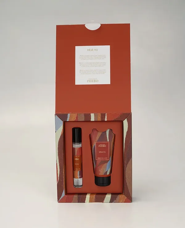 Como uma “segunda pele”, Déjà-vu tem uma personalidade confortável e intimista, graças ao alto grau de notas ambaradas em sua composição. Fluido e envolvente, com uma agradável saída de notas frescas, o perfume nos leva à uma experiência olfativa singular através de almíscares, madeiras e florais envolvidos em uma overdose de âmbar. No kit, o perfume é apresentado em formato roll-on, para ser reaplicado quando quiser, junto com creme para mãos.
