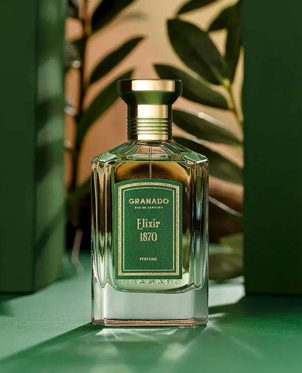 Elixir 1870 é uma criação contemporânea e viva, que evoca uma brasilidade centenária, elegância e o escape à natureza. As notas cítricas, aromáticas e amadeiradas nos transportam para as montanhas da serra de Teresópolis, no Rio, onde José Antônio Coxito Granado, fundador da marca, cultivava ervas e flores usada nas fórmulas dos produtos.