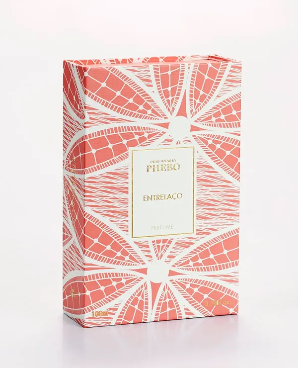 A embalagem, com acabamento em relevo e textura especial, foi pensada para transmitir uma trama rendada, levando sofisticação e atenção aos detalhes.