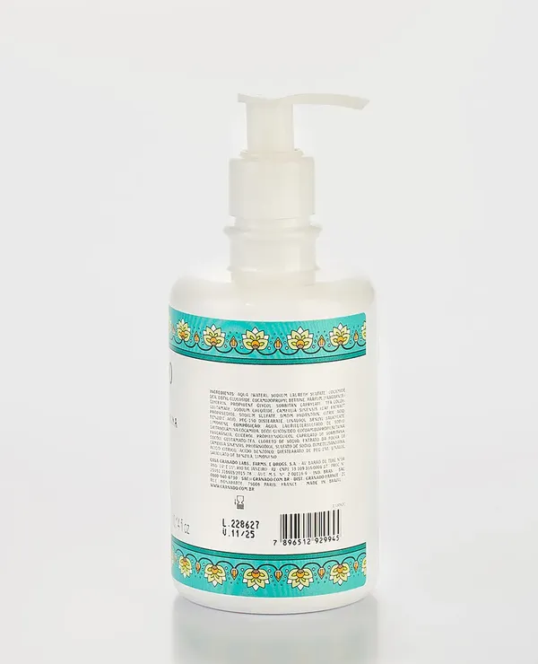 Formulado com pH da pele, glicerina vegetal e alta concentracao de extrato natural de cha branco, que tem acao revigorante. Limpa suavemente a pele, deixando-a macia e perfumada. Formula biodegradável. Livre de parabenos e ingredientes de origem animal.