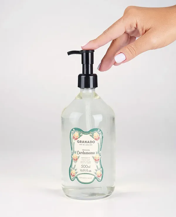 Com 94% de ingredientes de origem natural, o sabonete líquido Granado para mãos e corpo é feito com base vegetal e glicerina vegetal. Ele limpa suavemente e promove maciez à pele, além de deixá-la perfumada por mais tempo.