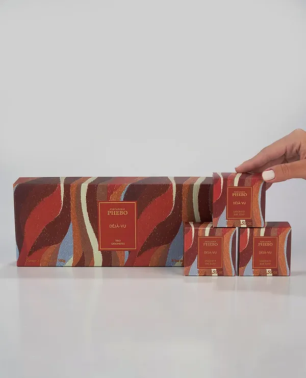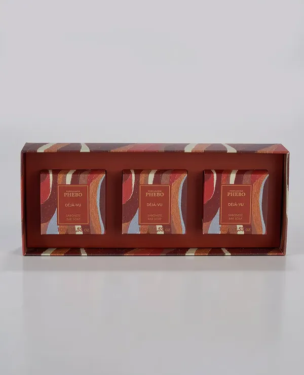 Como uma “segunda pele”, Déjà-vu tem uma personalidade confortável e intimista, graças ao alto grau de notas ambaradas em sua composição. Fluido e envolvente, com uma agradável saída de notas frescas, o perfume nos leva à uma experiência olfativa singular através de almíscares, madeiras e florais envolvidos em uma overdose de âmbar. O kit conta com três sabonetes em barra para que você também possa aproveitar a fragrância em outros formatos.